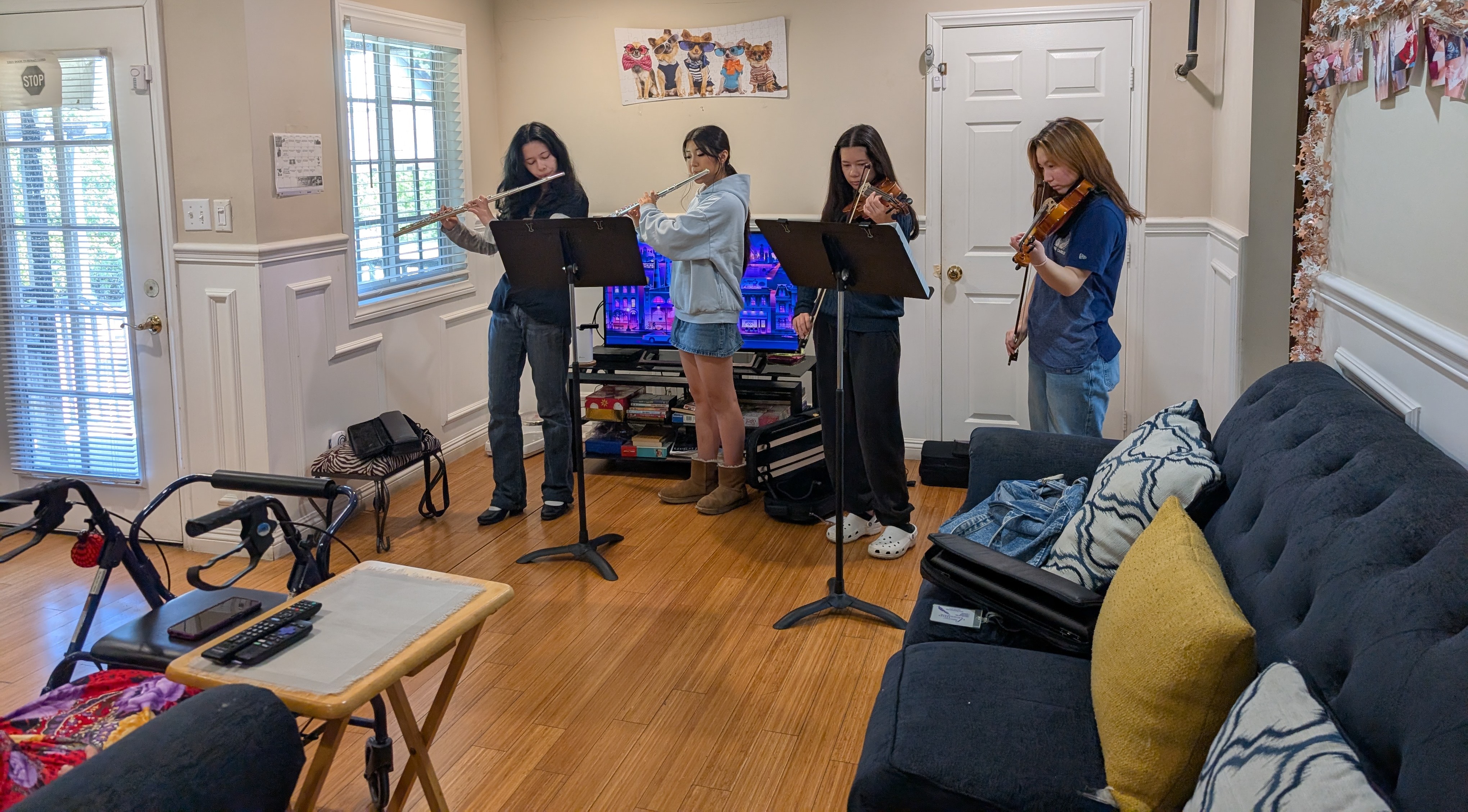 Sophia, Claire, Chloe, and Isabelle playing at Oak Park Healthcare Center